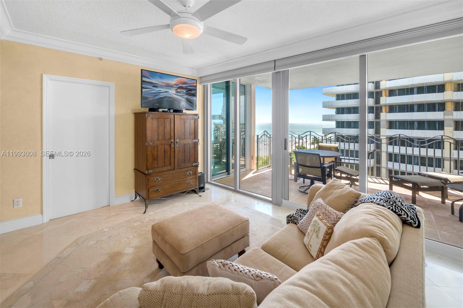Spanning over 2,300 square feet, this expansive home showcases an oceanfront primary suite with a spa-inspired bathroom featuring a separate jacuzzi tub and glass-enclosed shower. Elegant marble floors flow throughout, complemented by a beautifully appointed custom kitchen designed for both style and functionality.